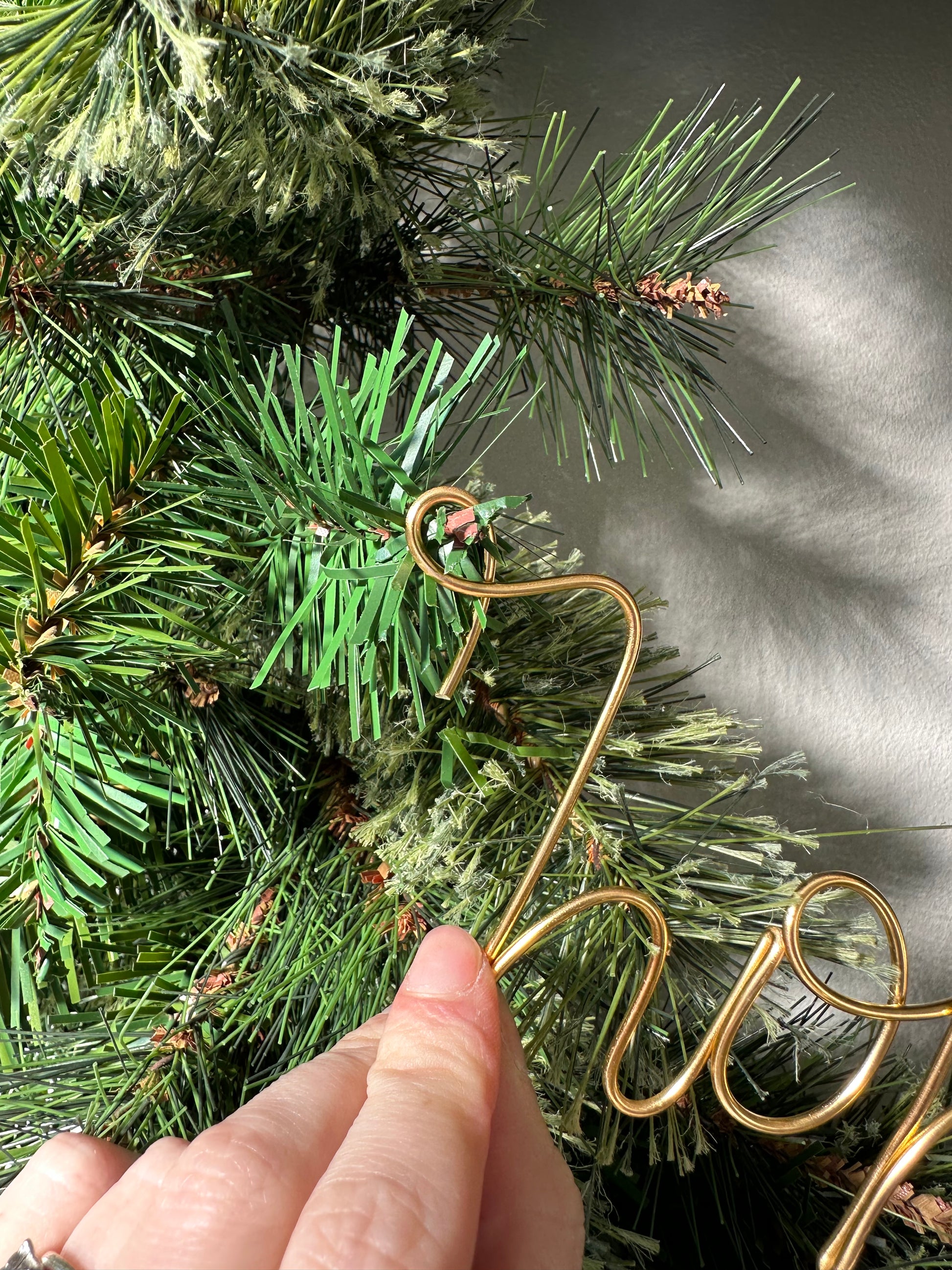 Each wire phrase will come with loops on the end for you to poke a branch through either end to hold (alternatively you can use ribbon to tie the wire phrase to your wreath - ribbon not included)