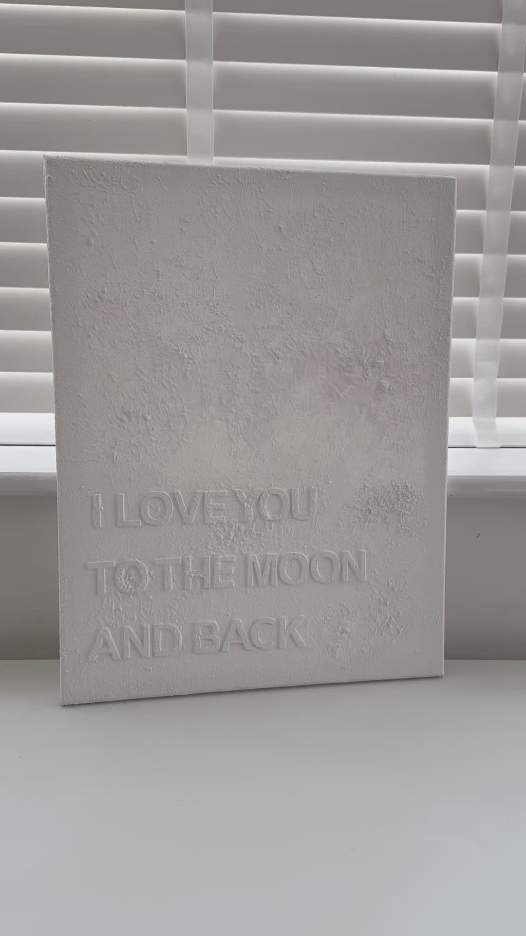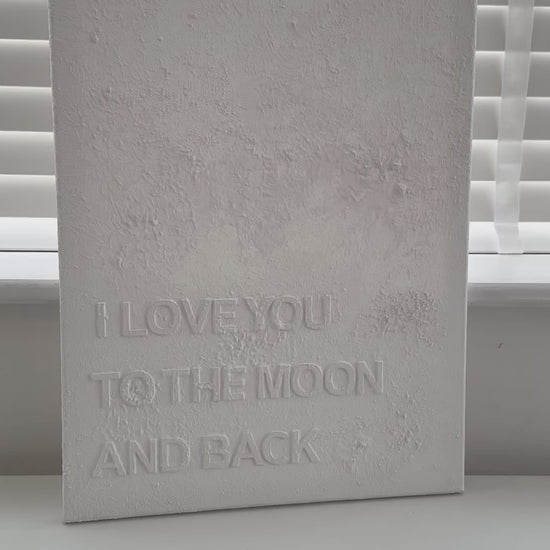 Handmade textured canvas with 3D quote ‘I love you to the moon and back’