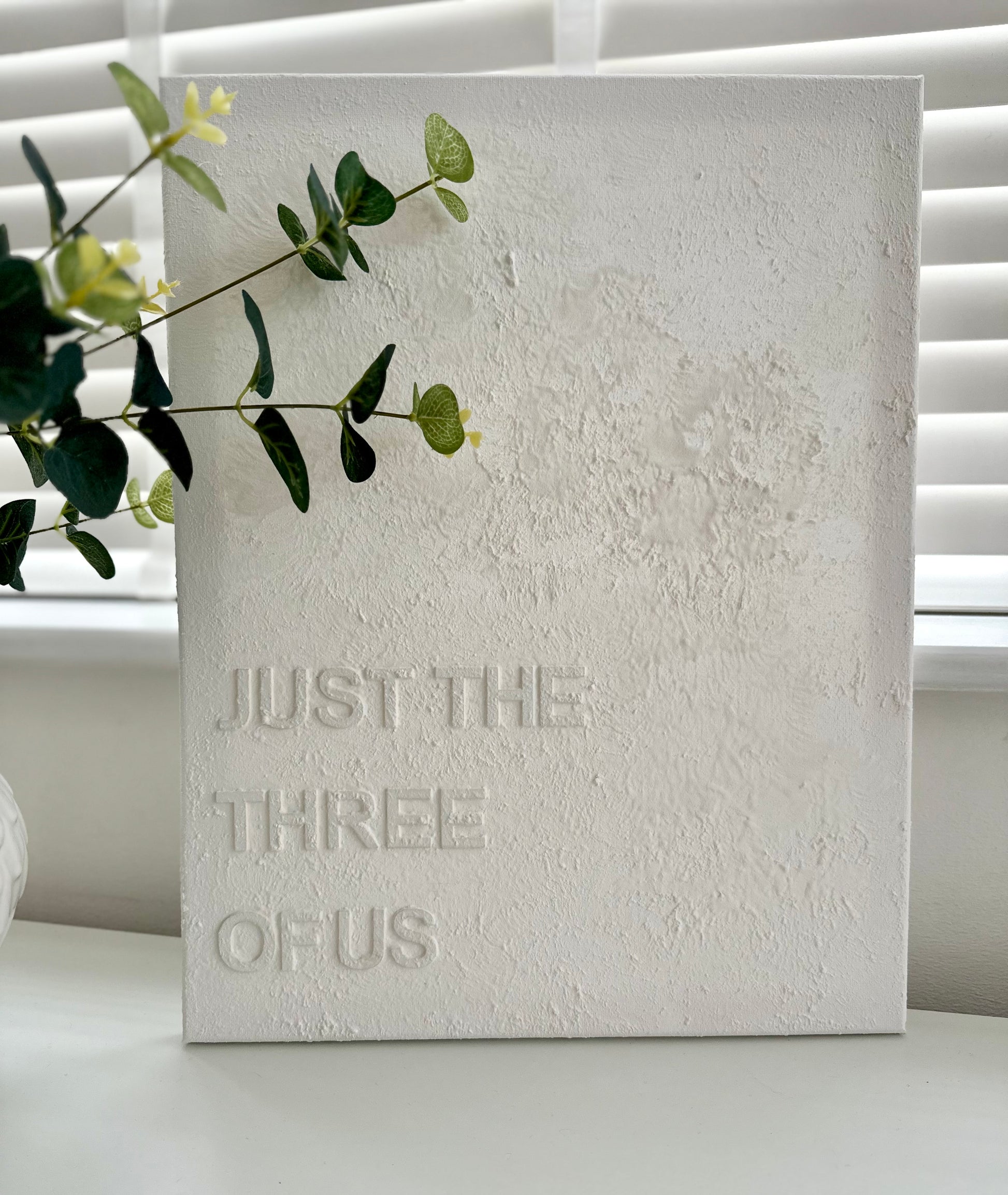 Handmade textured canvas with 3D quote ‘just the three of us’ (leave a note for two/four/five)Â